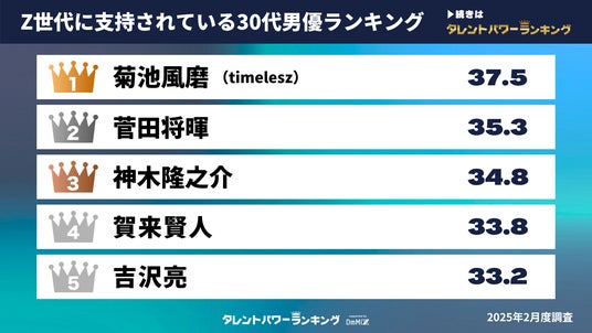 『タレントパワーランキング』では、タレントパワーランキングに登録されている30代男優について、Z世代(10代~20代の男女)が回答した結果を調査。