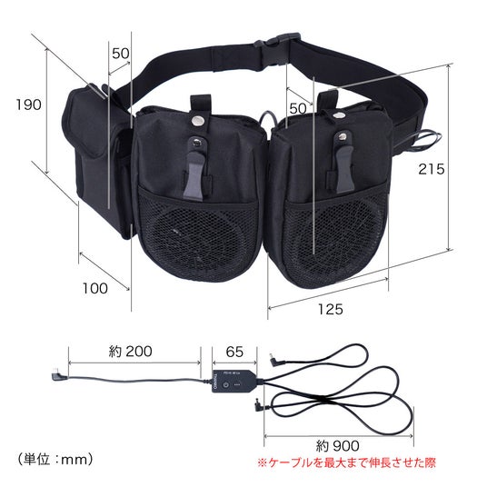 ・セット内容/本体、ファン×2、バッテリーポケット、ベルト、リモコン付きUSBケーブル、 ウレタンスペーサー×2、日本語取扱説明書