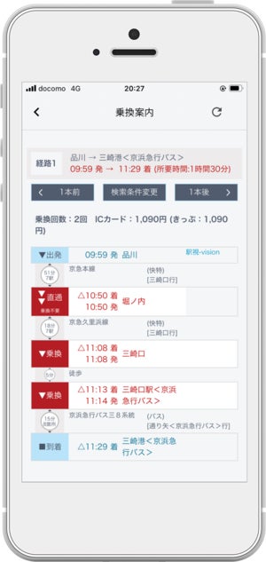 現行の京急線の乗換案内に加えて「京急線沿線の路線バス」も検索可能になります。