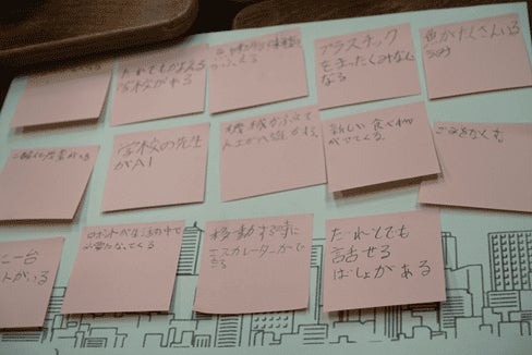 さまざまな視点から自由に出した意見を付箋にまとめている様子