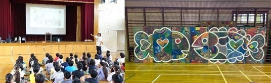 <左>早稲田大学の環境サークルと協働で新宿区の小学校に環境教育出前授業を実施<右>アートを通じて多様性を学ぶ体験型授業「ダイバーシティウォールパズルアート」完成作品