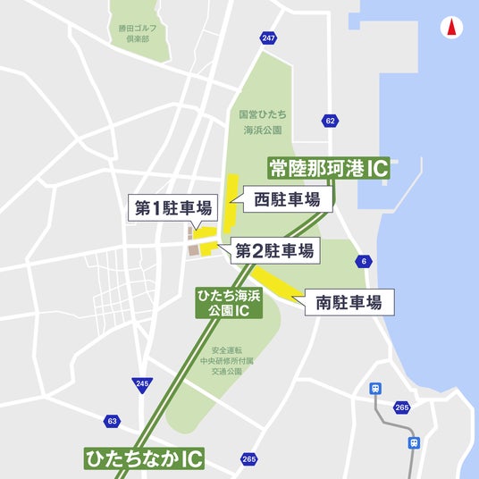 ※南駐車場については、「障がいのある方・マタニティー・車イス利用者専用駐車券」およびファミリー限定の「キッズイーストテント付駐車券」のみの販売。一般の販売枠はありません。