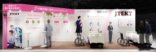 本展示会においてジェイテクトは、超高齢社会における介護負担増といった課題を解決すべく、自動車部品製造で培ってきた電動アシストユニット技術を活用した介護用品を出展します。トヨタグループの技術、知見を結集し「次期介護領域商材」の展示を通じて、介護領域にソリューションを提案します。