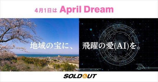 地方を含む全国の志ある中堅・中小企業の成長支援をデジタルマーケティング領域で展開するソウルドアウト株式会社(本社:東京都文京区 代表取締役社長CEO兼CCO:荒波 修、以下「ソウルドアウト」)は、『ローカル&AIファースト』構想を掲げ、地域、中堅・中小企業の課題を解決する事業支援のパートナーです。4月1日を夢を発信する日にしようとするApril Dreamに賛同しています。