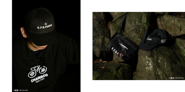 「E.F.S.FORCE」と地球連邦軍マークを前面にデザイン、飽きのこないシンプルな6パネルキャップです。サイドにはCAHRI&CO NYCロゴを刺繍、後頭部箇所にリフレクターパーツがあしらわれています。