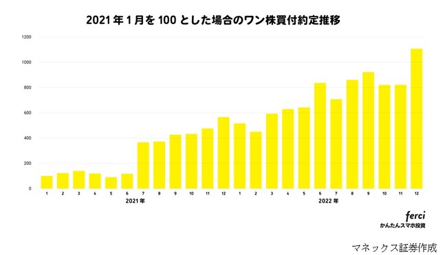 ※2021年1月~2022年12月におけるferciアプリ経由のワン株買付約定件数をもとに算出