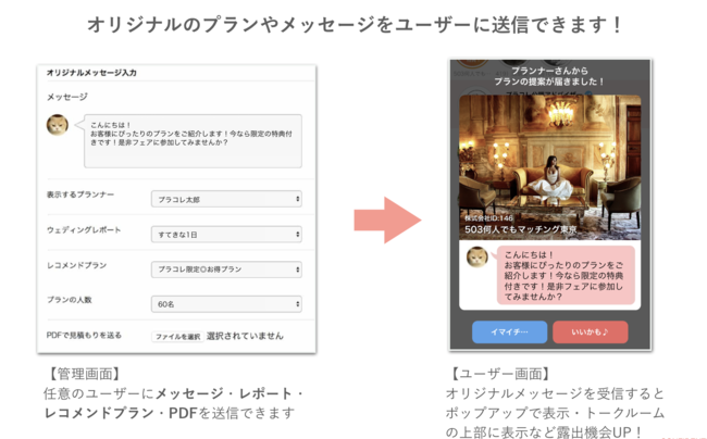 広告費用を多くかけないと情報が届けられず、待つことしかできなかった時代から、事業者がプロデュース内容に興味を持った新郎新婦だけに直接アプローチでき、広告出稿やカウンター送客に代わる新しいマーケティング手法として、登録する事業者も急激に増加しております。
