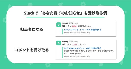 現在Backlogの「あなた宛てのお知らせ」より通知している事項を、チャットツールのダイレクトメッセージより受け取ることができます。