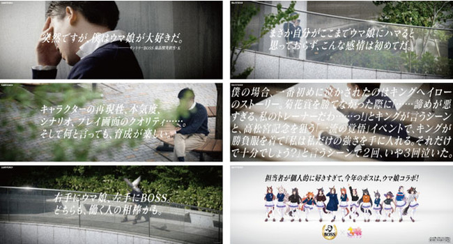 「BOSS」は今年で発売開始から30年目となる大切な節目ですが、今回のコラボレーション、実は「BOSS」の開発担当者が以前より個人的に「ウマ娘 プリティーダービー」にどっぷりハマっており、その愛や情熱を自らの仕事につなげたい、想いを伝えたい、そんなことがキッカケで企画がスタートし、実現しました。