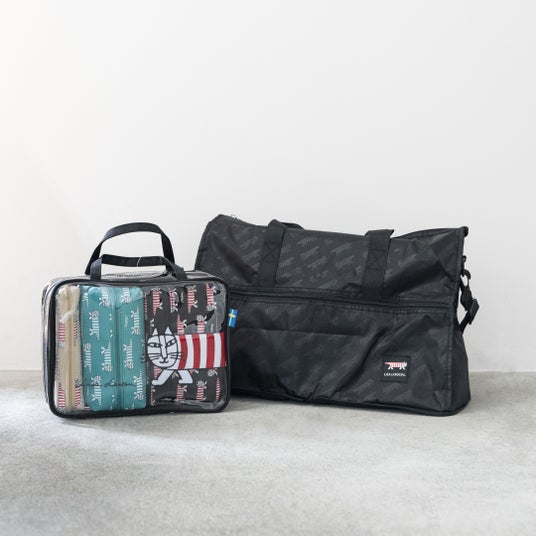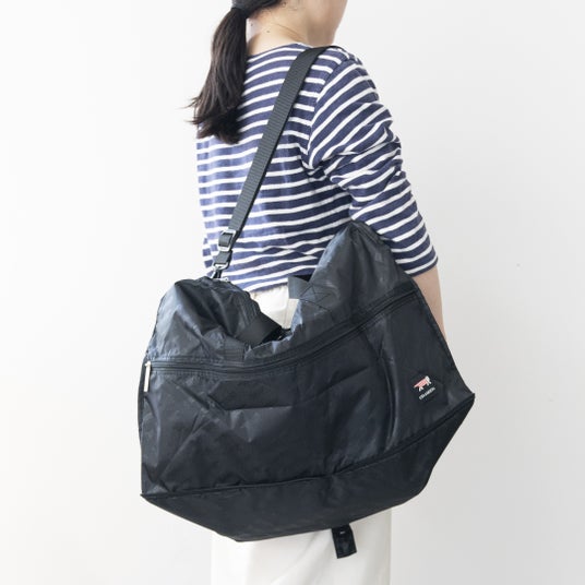 折りたたみボストンバッグ(M)コンパクトに収納できるので、カバンの中でいつでもスタンバイOKなボストンバッグ。スーツケースのキャリーバーに通せるのがポイントです。