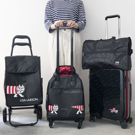 スーツケースセット(3色マイキー・総柄)1~3泊の旅行に心強いサイズ感のスーツケースとマルチポーチのセット。スーツケースは約33Lと大容量なのに、飛行機の機内持ち込みも可能!