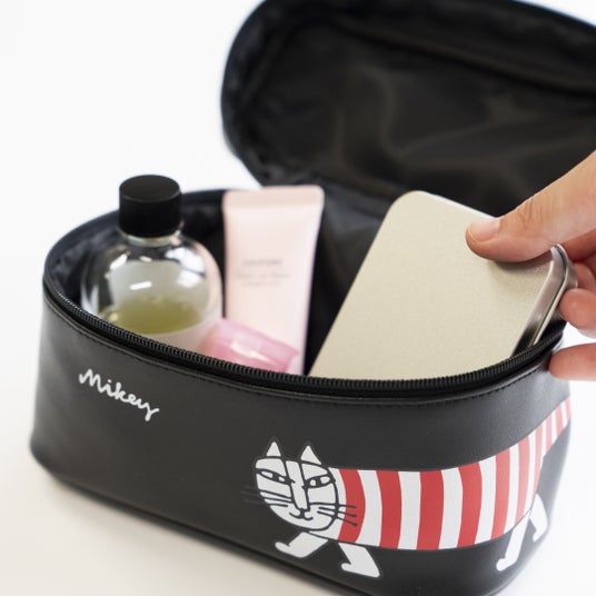 旅行バッグの中でバラつきがちな小物やアメニティを入れるのはもちろん、ポーチを取り出せば、こっそりオヤツを隠したり、急なお泊りセットを準備したりと、仕事やプライベートのもろもろの整理にぴったり。荷物をスッキリと整頓すれば、心もかる~くスタイリッシュに。いつでもどこでもマイキーと一緒に、さあ出発!(特設サイトより)