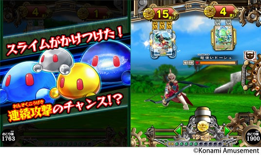 仲間になった「スライム」が敵に攻撃し、スライムの種類に応じたメダル枚数を獲得できます。