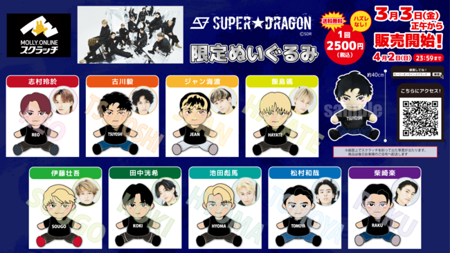 モーリーオンラインスクラッチ限定 『SUPER★DRAGON』のBIGぬいぐるみが3月3日(金)12時より展開開始