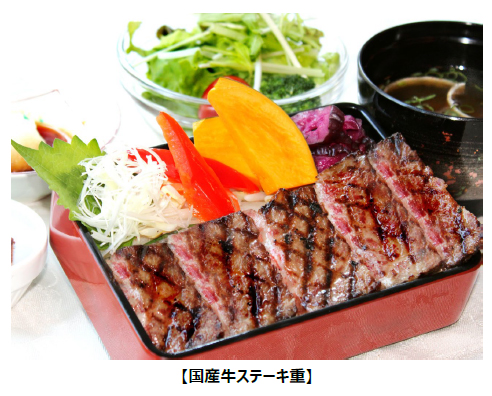 営業再開以降、多くの方にご利用いただきご好評いただいておりますが、感謝の気持ちを込めて、また、より一層お客様にご満足いただくため、12月1日(金)より新メニューとして、「国産牛ステーキ重」を数量限定で販売いたします。シェフが各地から厳選した牛肉を絶秒な焼き加減で仕上げた特別メニューをぜひご堪能ください。