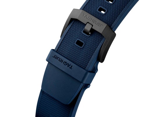ブラックDLCコーティングを施したケースが大胆で斬新な外観を湛え、それに、オラクル・レッドブル・レーシングのブルーでアスファルトの質感を表現したダイヤルを組み合わせることで、腕元にサーキットの興奮が蘇ります。 さらに、10-7時方向に配したオラクル・レッドブル・レーシングのロゴも両パートナーによるコラボレーション初の特徴です。