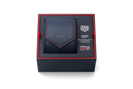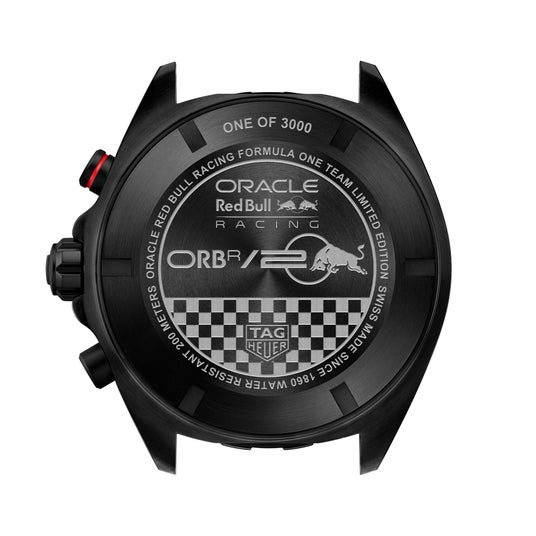 オラクル・レッドブル・レーシングへのオマージュはケースバックにも施され、チームの20年にわたるF1での活躍を思い起こさせる記念すべきシーズンであることを示す20とチームのロゴが刻印され、オラクル・レッドブル・レーシングとタグ・ホイヤーとのパートナーシップを形作ってきた、数々の勝利とマイルストーンを想起させます。