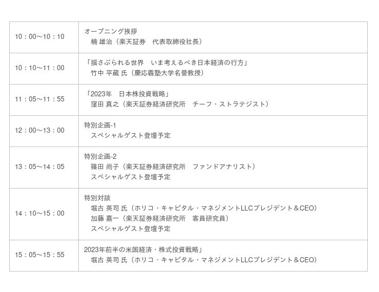 特設サイト:https://www.rakuten-sec.co.jp/web/learn/seminar/seminar_newyear2023/