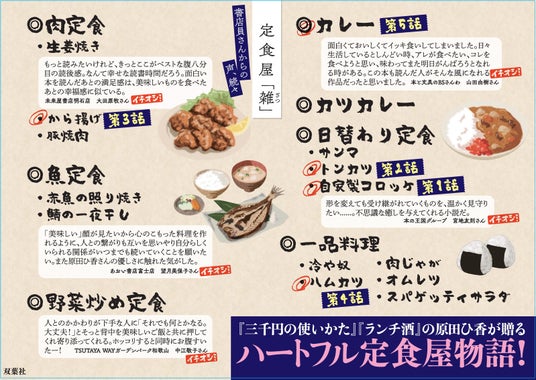「書き下ろしショートストーリーは本編のはじまる少し前、『定食屋「雑」』の2代目店主の“ぞうさん”が初代店主と出会った日、そして別れの日のワンシーンが描かれています。短いスピンオフながら、初代店主のどこまでも“粋”な佇まいと、二人が最後に交わすセリフに思わず泣いてしまいました。本編を読んだ方はさらにお楽しみいただけますので、ぜひお読みいただければ幸いです」(担当編集より)