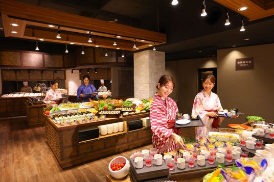 レストランでは加賀地方の伝統料理「治部煮」をご提供しており、とろみを付けた鶏肉やすだれ麩、季節の野菜などを煮たご当地グルメが味わえます。加賀らしさを感じられる郷土料理と和洋食が織りなす創作グルメバイキングをご堪能ください。