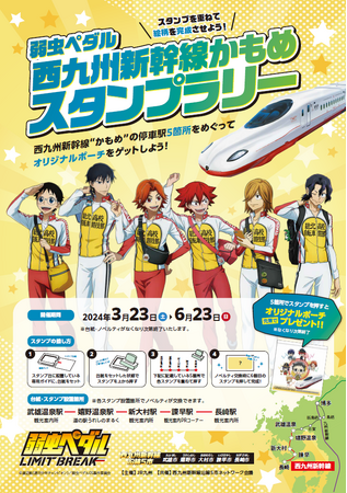 JR九州では2024年3月23日(土)~6月23日(日)まで、TVアニメ「弱虫ペダル LIMIT BREAK」と西九州新幹線かもめのコラボスタンプラリーを実施します。