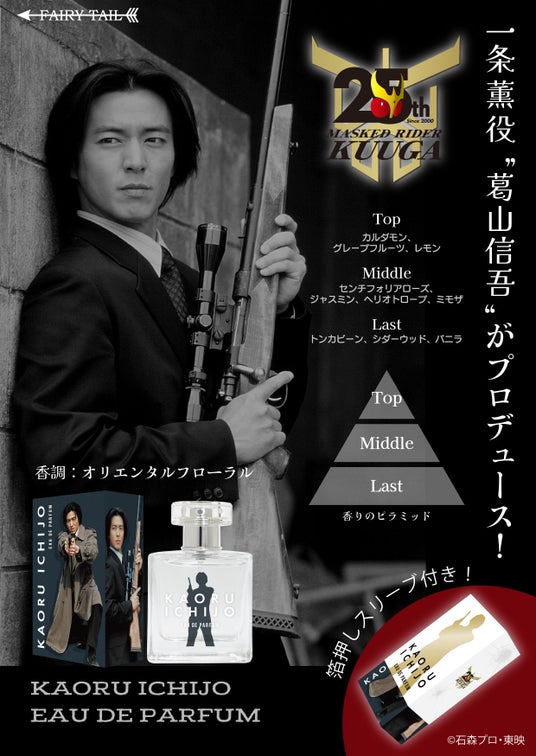 香水の輸入販売を手がけるフェアリーテイル株式会社(東京都港区)は、2025年1月30日に放送開始から25周年を迎えた「仮面ライダークウガ」より、一条薫をイメージした香水を発売します。