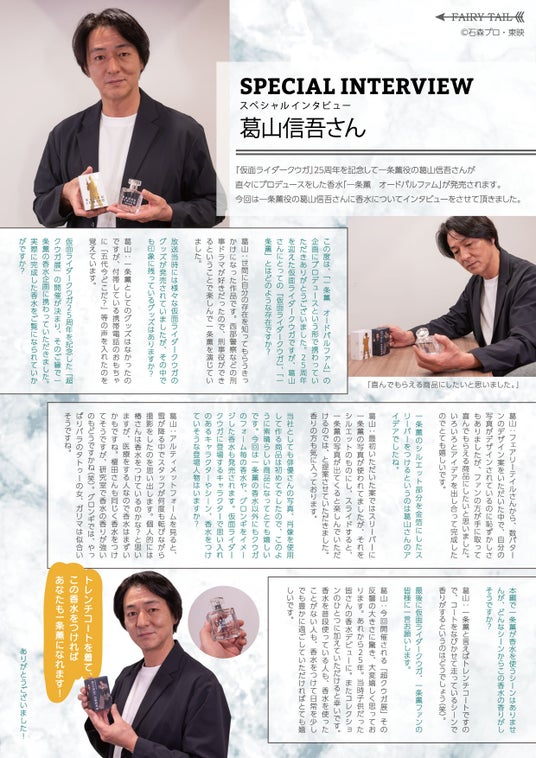 一条薫役の葛山信吾プロデュースの元、仮面ライダークウガ25周年を記念した香水が登場!