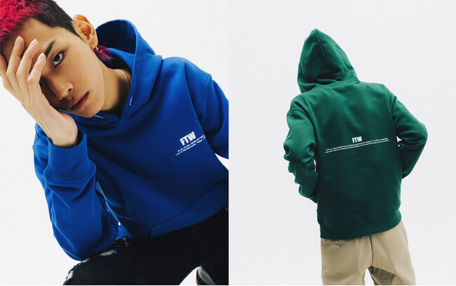 ブランド名の<FTW>は“FOR THE WEEKEND”の略語で、“仕事や学校など制約の多い社会へのアンチテーゼを唱え、自身のアイデンティティが開放される週末のためのユニフォーム”というコンセプトを表現。