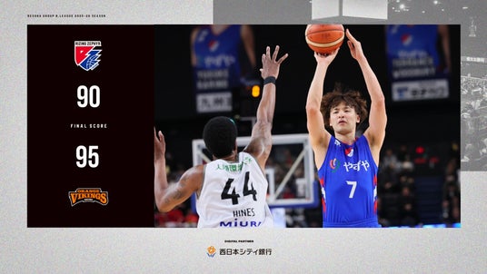 2026年3月22日(日)に開催した、りそなグループ B.LEAGUE 2025-26 シーズン【ライジングゼファーフクオカ vs.愛媛オレンジバイキングス】戦は、“福岡 90-95 愛媛”で福岡の敗戦となりました。