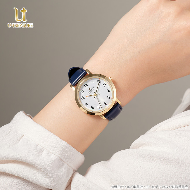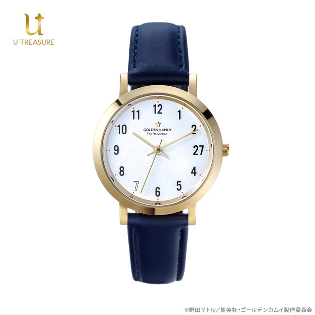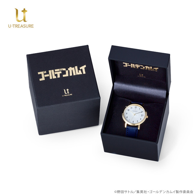 大人のための本格的なキャラクタージュエリーを扱うユートレジャー(東京都豊島区:代表取締役:伊藤 崇史)は、TVアニメ『ゴールデンカムイ』とコラボし、第七師団をイメージしたゴールド&ネイビーカラーの腕時計を8月18日(木)~9月20日(火)の期間限定で予約受付を行ないます。このたびの新作は、文字盤のインデックスの3時(27時)位置は「第27聯隊」、7時位置は「第七師団」を連想させる仕様で、鶴見、二階堂、宇佐美、月島、鯉登のモチーフをモノグラム調にさりげなくデザインしています。裏蓋には5人のシルエットを刻みました。ユートレジャーコンセプトストア池袋、ユートレジャーオンラインショップにて取り扱います。