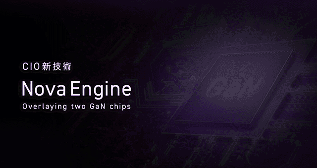 次世代半導体のGaNチップをダブルで搭載することで、変換効率が向上し充電器本体の発熱をさらに抑制することが可能になった、CIO新技術“NovaEngine”。