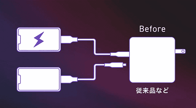 USB-C×2・瞬断防止・世界最小級・最大100W高出力・2台同時充電120W・電力自動振り分け機能搭載・ハイエンドノートPC充電対応