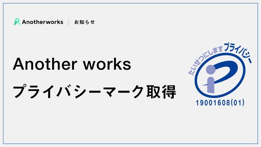 複業したい個人と企業や自治体を繋ぐ、総合型複業マッチングプラットフォーム「複業クラウド」を運営する株式会社Another works(本社:東京都港区、代表取締役:大林 尚朝、以下「当社」)は、一般財団法人日本情報経済社会推進協会より個人情報の適切な取り扱いに関する認証を受け「プライバシーマーク(Pマーク)」を付与されたことをお知らせします。ビジョン「挑戦するすべての人の機会を最大化する」の実現を目指し、今後もより一層の情報セキュリティ強化と個人情報保護の徹底に努めてまいります。