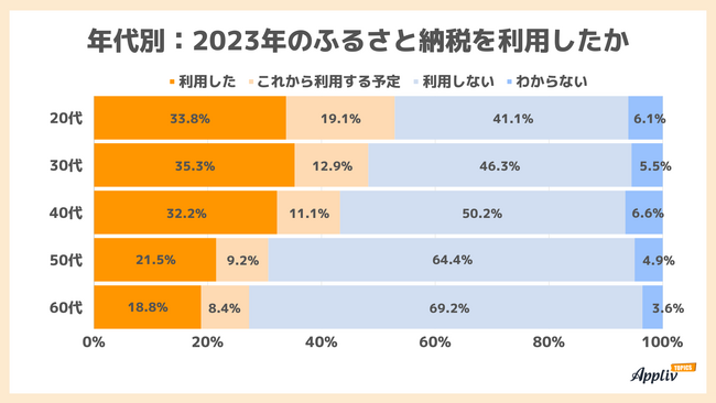 ナイル株式会社(本社:東京都品川区、 代表取締役社長:高橋飛翔、 以下ナイル)が運営する「Appliv TOPICS」にて、20~69歳男女1,504人を対象に、2023年11月2日~11月9日の期間、ふるさと納税に関する調査を実施しました。