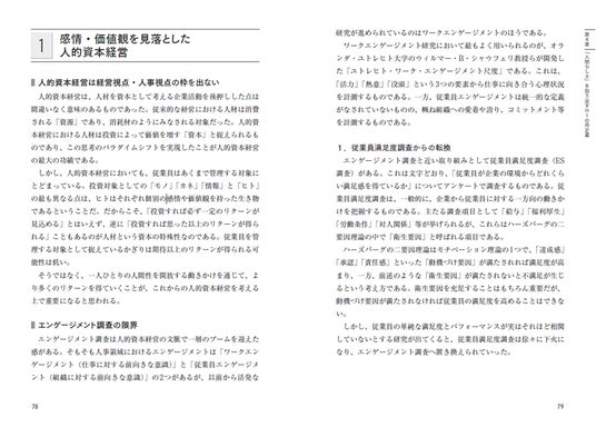 第1章では、日本の「失われた30年」を背景に、人的資本経営が台頭してきた経緯を整理。従業員を「資源」から「資本」へと位置づけ直すことで日本の人材マネジメントに変革をもたらした功績を評価しつつ、なお構造的課題を抱えている現実を明らかにします。そして、企業の価値向上と従業員の価値向上をいかに融合させるかが、今後の人的資本経営の核心課題であることを論じます。