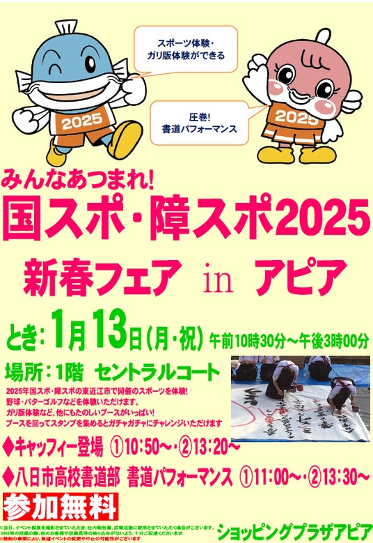 1月13日(月・祝)、ショッピングプラザアピアにて開催 ~平和堂は「わたSHIGA輝く国スポ・障スポ2025」を応援しています~