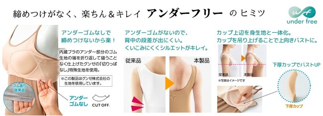 株式会社ニッセン(本社:京都市南区、代表取締役社長:羽渕 淳)が販売する、アンダーゴムなしで締めつけないブラトップ『under free(以下、アンダーフリー)』の新商品が2022年6月10日(金)AM11時より販売を開始いたしました。商品は、「ニッセンオンライン」(https://www.nissen.co.jp/)で購入が可能です。