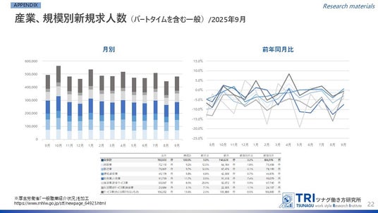株式会社ツナググループ・ホールディングス(本社:東京都中央区、代表取締役社長:米田 光宏)を母体とする、多様な働き方の調査研究機関「ツナグ働き方研究所(拠点:東京都港区、所長:大野 博司)」は、官公庁などが発表する労働市場関連のデータをキュレーションしつつ、分かりやすくまとめた「労働市場データレポート」を毎月発表しています。今回は10月下旬に発表された最新データをもとに2025年9月度のレポートについて、とりまとめましたのでご報告いたします。