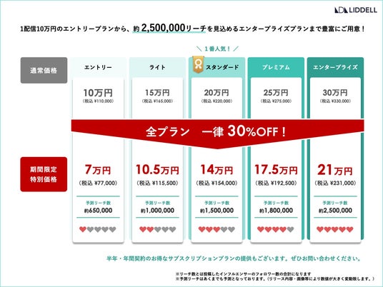 「最安値10万円、最短2時間ですぐ配信、最大 200万フォロワーに向けて配信可能」で、SNSで圧倒的に認知を獲得することが出来ます。