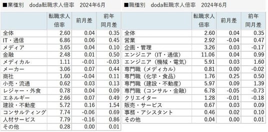 パーソルキャリア株式会社が運営する転職サービス「doda(デューダ)」(編集長:桜井 貴史)は、2024年6月の転職求人倍率をまとめた「doda転職求人倍率」を発表いたします。