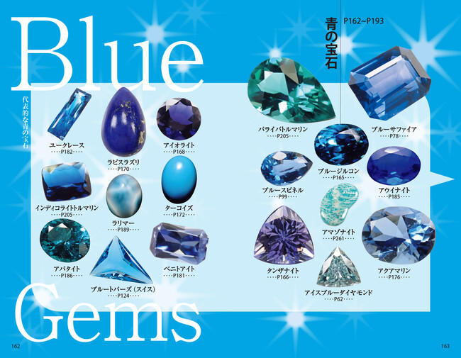 ダイヤモンド、エメラルド、サファイア、ルビーの四大宝石以外の宝石は、色別に章立てして紹介します。