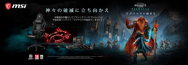 3月12日(土)より、対象のMSI製品を購入すると「アサシン クリード ヴァルハラ」と大型DLC「ラグナロクの始まり」がもらえる!