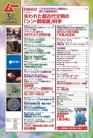 株式会社 ワン・パブリッシング(東京都台東区/代表取締役社長:廣瀬有二)は、2023年2月9日(木)に月刊「ムー」3月号を定価:870円(税込)を発売いたしました。月刊「ムー」は世界の謎と不思議に挑戦するスーパーミステリー・マガジンです。