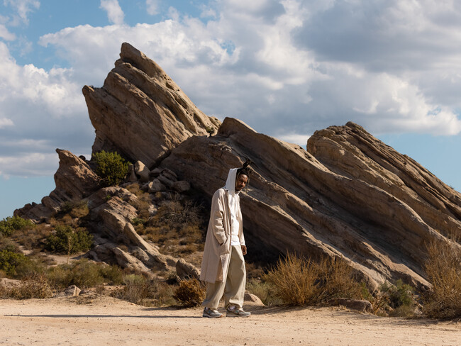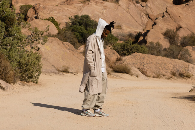 今回の別注では、USAモデルである「MR2002」を現在のスペックで再現した「M2002R」をベースに、砂漠の神秘、”オアシス”をテーマとしてatmosが表現。絶妙なトーン違いのベージュカラーのスウェード、ヌバック、メッシュなど、多様な異素材を組み合わせることで、砂漠の陰影や凹凸を表現した一足となっている。