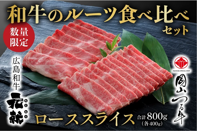 おかやま和牛肉の中でも厳選された逸品和牛「岡山つる牛」と広島県が誇る和牛「元就(もとなり)」とのローススライスを詰め合わせました。元就、岡山つる牛共に、日本最古のつる牛から受け継がれた優秀な血統です。それぞれの美味しさを心ゆくまでご堪能ください。