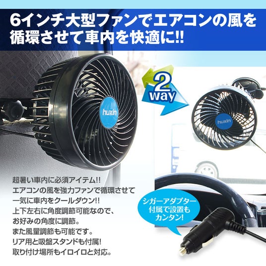 6インチ大型ファンでエアコンの冷気を循環させて冷房効率が大幅にアップし車内を快適にします。
