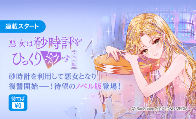 電子マンガ・ノベルサービス「ピッコマ」では、12/18(日)より、フルカラー・縦スクロールマンガコンテンツSMARTOON(R)︎『悪女は砂時計をひっくり返す』(The Ant)のノベル版『悪女は砂時計をひっくり返す(ノベル)』(D&C MEDIA)の配信を開始いたします。今回の配信では一挙40話分を公開。更新は毎週日曜日です。