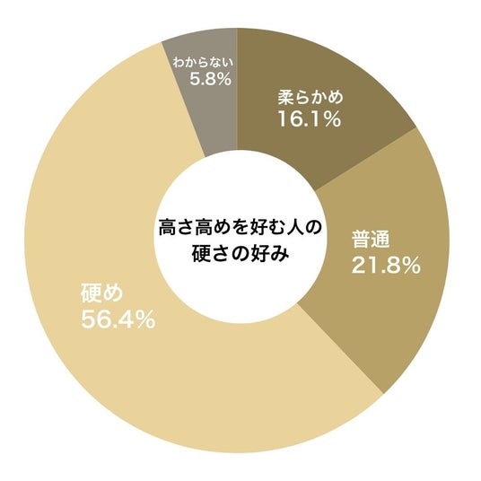 12万件の睡眠統計データによると、高さ高めの枕を好む人は、枕の硬さは「硬め」を好み、首元はしっかりと支える形状を好む傾向にあります。