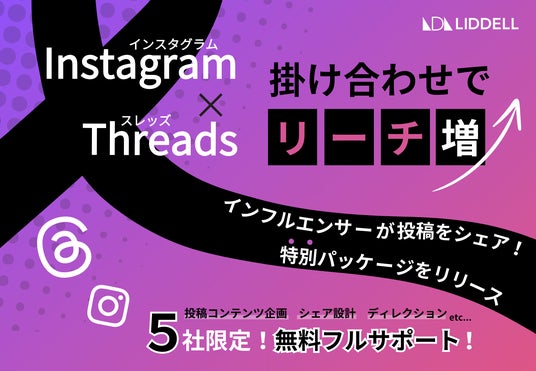 人を基軸としたマーケティング事業を展開するLIDDELL株式会社(本社:東京都港区、代表取締役:福田 晃一、以下リデル)は、Instagram(インスタグラム)アカウントを運用する企業向けに、インフルエンサーを活用しインスタグラムへのリーチ数を強化する《スレッズシェア キャンペーン》を開始致しました。話題のThreads(スレッズ)からの流入やおすすめ表示が増加することで、インスタグラム投稿のリーチ数増加を期待でき、ブランドや商品の認知拡大を後押し致します。