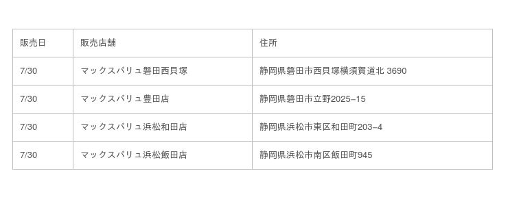 店舗:当日店舗に到着次第販売開始いたします。※夕方(17:00 頃)到着を予定しております。